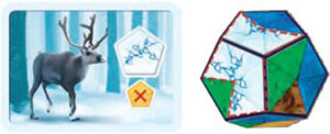 Example: Matthew 1 and Celine 2 are competing to house the fox on their Planet. On the last turn, they both had a forest spanning 9 Areas and touching a glacier. However, Celine's Planet also contains a second 5-Areas forest which touches a glacier 3 , whereas Matthew doesn't have another. In this case, Celine wins the card.