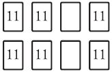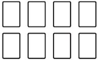Deal each player eight cards, face down. Keeping cards face down, each player arranges cards into two rows of four cards across, creating an individual playing area.