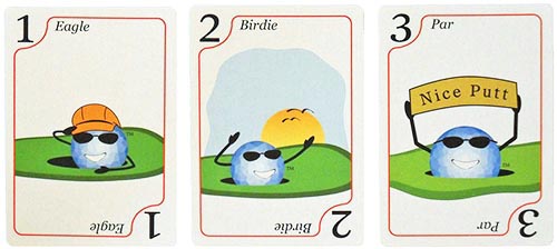 Count strokes according to the face value of each card. (The negative value of the Hole-in-One card removes strokes from the score).