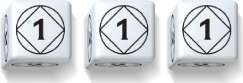 Example: After finishing his die rolls, Carter has the following dice: 1,1,2,4,4,6,6,6. He moves the battle marker up one space on enemy #1 since he has at least two Is.