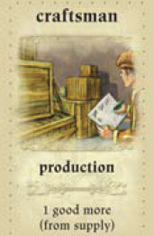 Notes: Remember the special function of the factory. If the kind of goods a player produces is exhausted in the supply, he goes without. If the craftsman does not produce goods, he does not get an extra good (privilege).