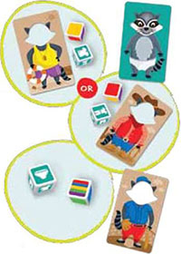Roll both dice, then pick up a costume card that matches both dice and place it on your raccoon player card.