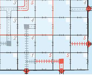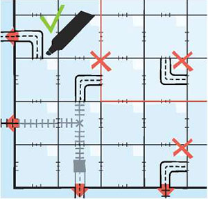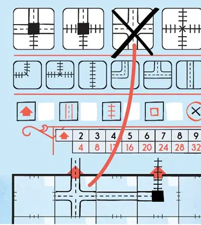 Then, each player must check for incomplete Routes. Each end of a Route that does not connect with any other Route or the outer edge of the board counts as an Error. Mark each one of these Errors with this symbol:
