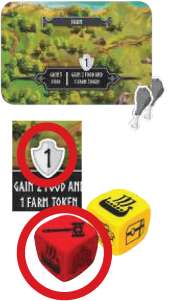 Farm - When you collect a Farm card, immediately take the indicated number of Food Tokens from the supply. Then, optionally, you may decide to attempt to pillage the farm.