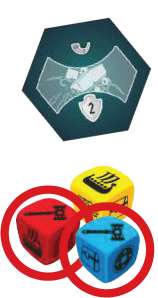 Crew dice which shows 2 hammers provide 2 Combat dice. Roll your combat dice and if you meet or exceed the defense number, collect the indicated reward.