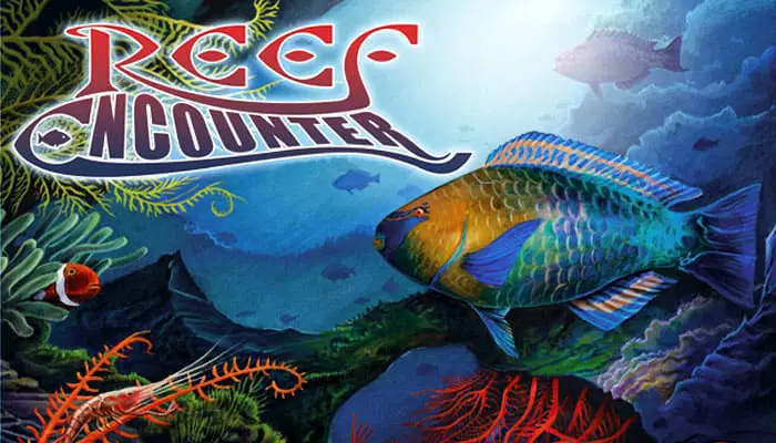 Reef Encounter is about life on a coral reef! Using polyp tiles, players grow different types of corals, which they can protect from being attacked by other corals through judicious placing of their four shrimp counters.