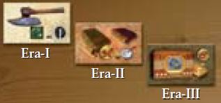 Note: The color of each tile corresponds to an era of the game. The Era-I tiles are available in the first era. Era-II tiles become available in the second era, while Era-III tiles become available in third era.