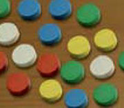 There are 150 wooden cubes, 30 in each of the five player colors (white, red, blue, green, yellow).