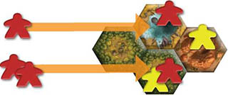 Acting simultaneously, each player removes 1 of their tribe members from the hex. This repeats until no more than 1 player's tribe members remain in the hex.
