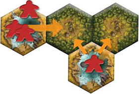 Move up to the number of tribe members indicated by the Action Board from one hex to any adjacent hex. Neither terrain nor opponent tribe members affect movement.