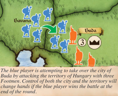 The player who wins the battle not only gains control of the territory, but also takes control of any city or castle that be present as well.