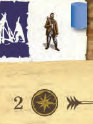 When there are 4 players, take the special "Arranging the Camp" card and place it on the board covering the corresponding space. When there are only 2 players, they have an additional Character - Friday. Take the Friday card as well as the white pawn, and place them within easy reach of the players, near the board. Take a Wound marker and put it on the leftmost space of Friday's life track.