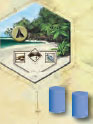 Take the Island tile marked with the number 8 and place it face up (island side) in the indicated Island space on the main board. Place the Camp token (Camp side up) on that tile. Put a black marker on the Shovel card, to cover the required terrain type icon, i.e. beach. This terrain type is explored at the start of the game by placing the first Island tile.