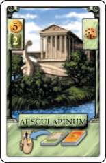 The temple of Asculapius (the God of healing) enables the player to pick up any character card from the dis- card pile and add it to their hand.