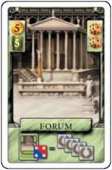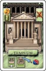 If a Forum is activated (it must lie directly next to the Templum), the third action die can be used to determine the number of additional victory points which the player gets from the general stockpile. The action dice must not yet have been used in this go. The Templum itself is not activated separately.
