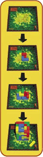 No part of any stone may protrude over the edge of the building scenario or above the height indicated on the board (details see next page!).