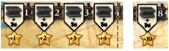 If you reach spaces 1 through 4 or space 8 of the Kiev railroad with your black track and a locomotive, you score the points depicted in the stars during future scoring phases. These points are cumulative.