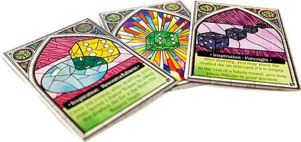 Rare Glass Boards allow players to acquire and place Rare Glass Dice in their windows. These dice pair with new Private Objectives offering new ways to score.
