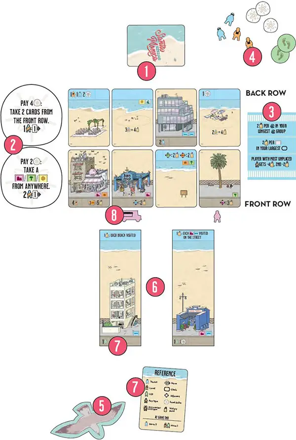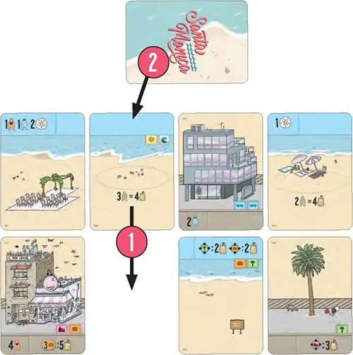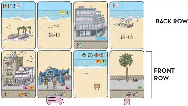 Each turn, you will draft a feature card from the display to build up either your top-row beach or your bottom-row street