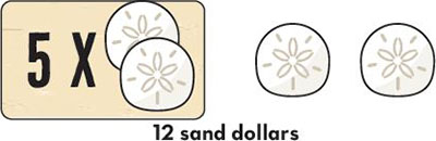 If you have five sand dollars, return four to the bank and place the remaining one on the multiplier to show that it counts for five. You can keep stacking sand dollar tokens on here to get to 10 or even 15.