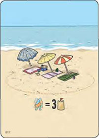 This symbol tells you to take a certain number of sand dollars from the supply. In this example, you would take two. The sand dollars may be placed anywhere in front of you, but they are not actually part of your city.