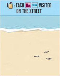 There are two types of feature cards: beach cards which have the ocean at the top, and street cards, which have a wooden boardwalk and a street at the bottom.