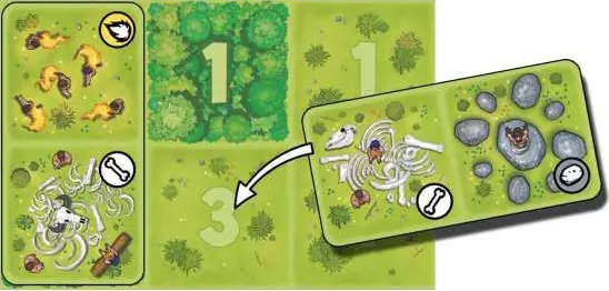 Choose a tile in your Personal Pool and lay it down on a square (Forest, Plain, and/or Cave) still free of any Tribe tile or Bear token. You must also respect the following rules: