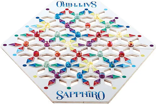 If you place the last (sixth) tile to surround a gem, you've created a Sapphiro and can capture the gem! Take that gem and place it in front of you. Draw a new tile to end your turn. Play passes to the left.