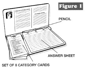 All players quickly fill in the first column of their answer sheets. Answers must fit the category, and must begin with the key letter. See Rules for Acceptable Answers. (These rules also appear inside each folder).
