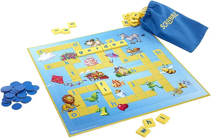 For each word you complete, take one scoring chip from the kitty. If you complete two words with one tile, collect two scoring chips.