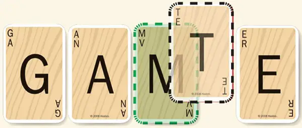 Search through the deck and place the letters G, A, M and E in the play area, as shown on the next page.