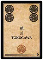Tokogawa plays a 1-mon Tokugawa block with a Tokugawa card. He earns an additional point for the previous Tokugawa block deployed. The Impact score is now 7 to 8.