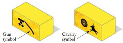 Some blocks also have attached gun or cavalry ability, indicated by a gun or cavalry stencil.