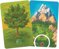 the top-right corner - an apple with a hat signifies a card that will go into a player deck (as described in point 4 below), with all other cards becoming a part of the mountain, as explained below.Cards marked with a red apple