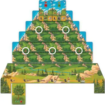 Note: The 15 basic mountain cards are shuffled and placed in all of the remaining spaces. Only one of them will be face-up. See the setup example.