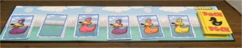 Line Forward: Move each duck card forward one space. The duck at the front of the line is removed from the board and placed at the bottom of the duck pile. The top card from the duck pile is put in the last spot of the duck line.