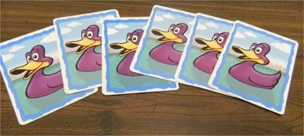 The other cards are shuffled with the "empty water" cards to form the duck deck. The top six cards from the duck deck are dealt out to the game board from left to right.