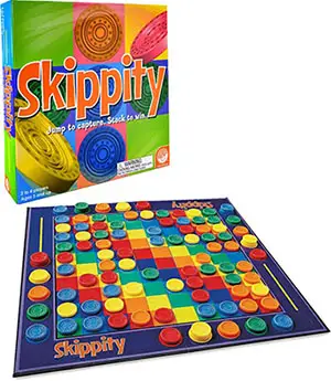 To jump: choose a skipper, lift it over the skipper you are jumping and put it down on an empty square that is adjacent to the skipper you just jumped. See examples of play to see how the jumps work.