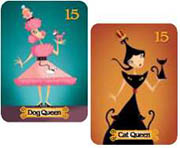 The first time you play, look through the deck to get familiar with the cards. Note that each queen has a different point value, and that there are also King, Knight, Dragon, Jester, Sleeping Potion, and Wand cards, as well as number cards from 1 through 10.