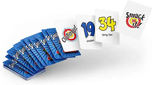 Anytime a Smack it! card is placed on top of the pile (including challenge rounds), the first player to smack the card wins e pile. (Smacking must be done gently to avoid injury to yourself and other players).