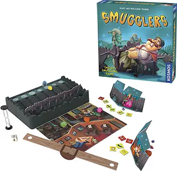 Place the smuggle tokens, the hourglass, and the die beside the game board.