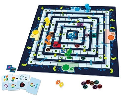 Space Escape is a cooperative game. Players must work together to collect all four pieces of equipment and make it to the escape pod before any one of the following happens: