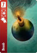 If activated, immediately the Bomb explodes! The next card (of your opponent) that you reveal this round will automatically retreat (tilt it). You do not earn any infiltration points.