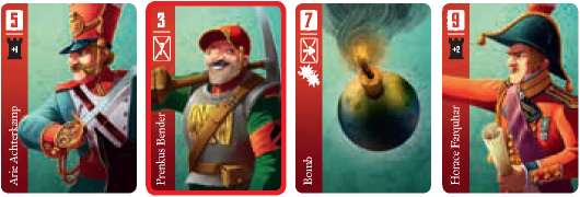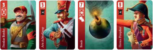 Double damage: If your Bomb is activated and you correctly identify the next enemy card this round, you will choose 2 Soldier cards instead of 1 for your opponent to exhaust in the next round.