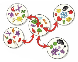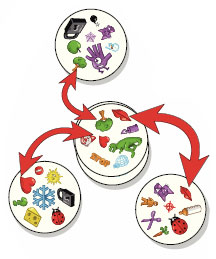 The first player to find the symbol names it, takes the card from the draw pile and places it in front of him or her, on top of his or her card. By taking this card, a new card is revealed.