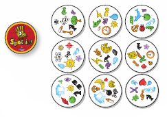 Each player must be the fastest at spotting the identical symbol between his or her card and the first card of the draw pile.