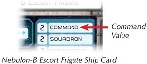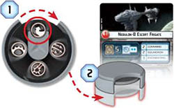 1. The Rebel player chooses acommand for his Nebulon-B Escort Frigate by taking one of the ship's unassigned command dials and rotating the disk so that the fastener frames the