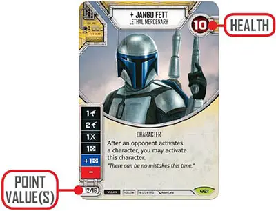 A character's point value(s) is how many points it costs to include it on a team. If there are two values, then the smaller value is how many points it costs to use one of that character's dice, and the larger value is how many points it costs to use two of that die. A character with two of its dice is called an elite character.