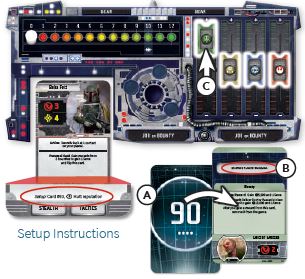aEach player takes the databank card specified on their character card (see "Key Concept: Databank Cards" on page 2). If the databank card is labeled as "Cargo", they place the card above their ship sheet in the "Cargo" slot. Otherwise, they place the card below their player board in one of the "Job or Bounty" slots.bEach player places their character standee on the map on the starting planet listed on the databank card they just drew.cIf the setup instructions provide reputation, the player moves the listed faction's reputation token up or down to the specified space.