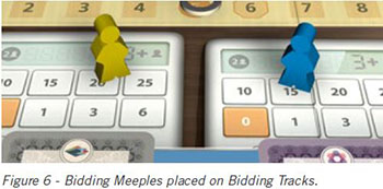 Bidding continues until all Bidding Tracks have one Bidding Meeple on it.